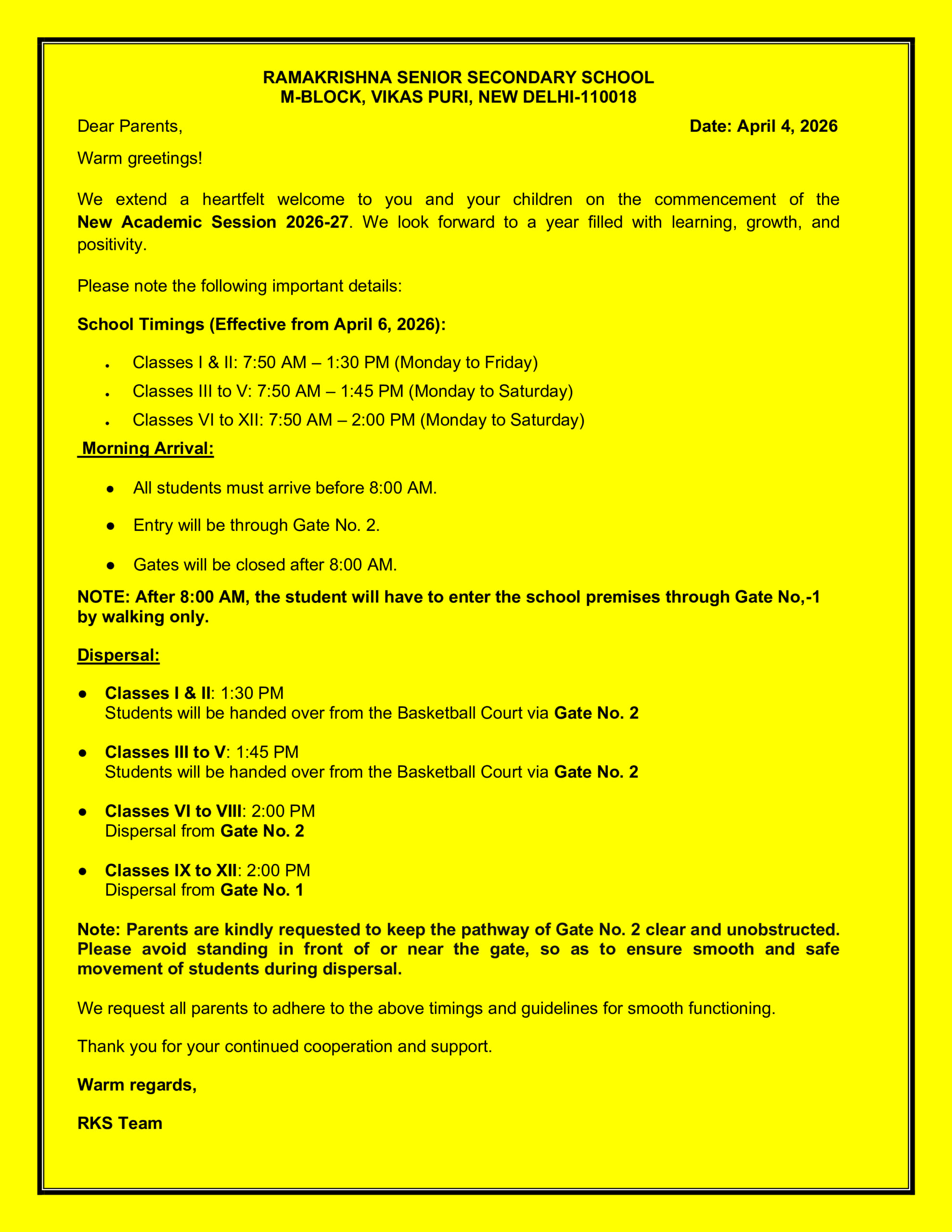 • School Timings Classes 1 to 12